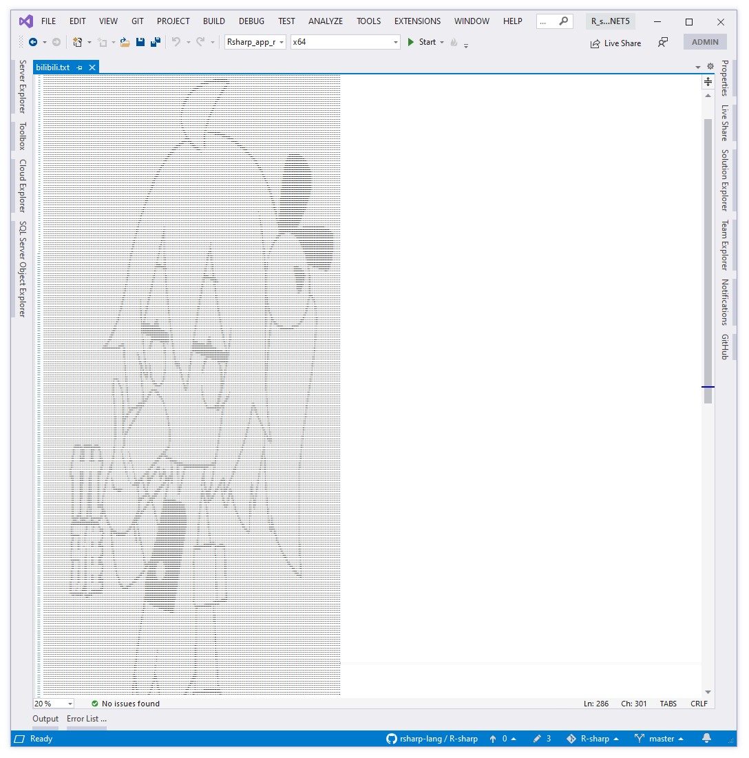 然后我们将图像通过下面的一段R#脚本进行处理,转换为纯ASCII字符串用于显示上面的图像内容: