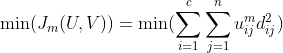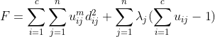 - dij平方指的就是欧氏距离下元素j跟中心点i之间的距离,整个表示的就是各个点到各个类的加权距离的和。