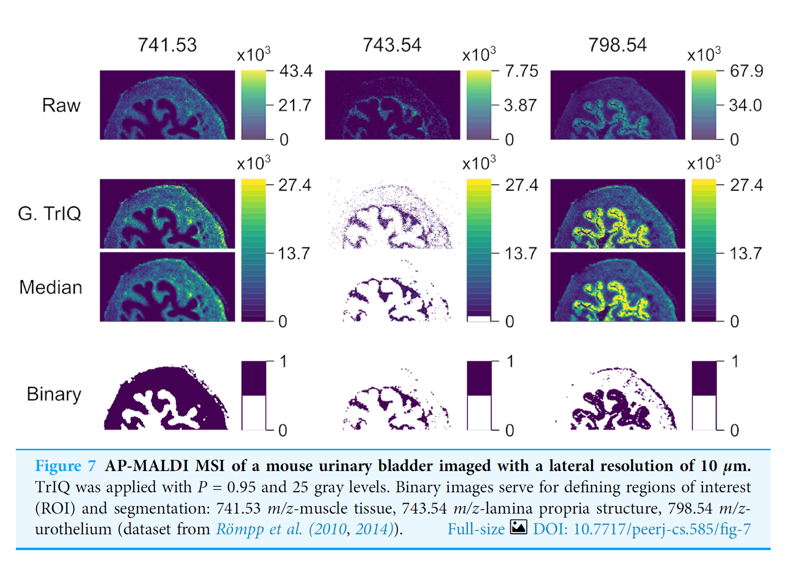 可以看得见信号的整体分布大致比较平衡了。将TrIQ算法应用到质谱成像的渲染引擎之中看看效果: