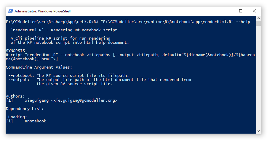 嗯,其实这个脚本代码也是一个命令行帮助文档自述的R#脚本:这个脚本既可以执行相关的具体功能代码,也可以通过命令将自身代码以文档化的形式将使用帮助信息显示在命令行之中,例如:--help