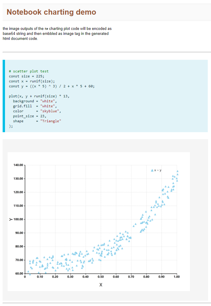 执行一下上面的代码,嗯嗯,不错不错,R#代码所绘制的图表确实已经被显示在了我们所生成的html文档之中了: