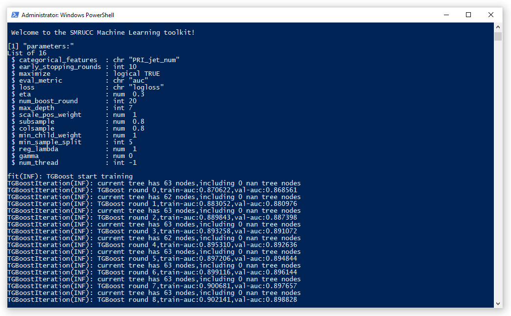 let model = xgboost(training_set, validation_set, params);