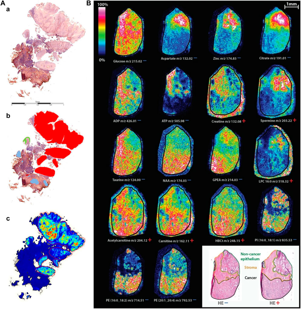 质谱成像是以质谱技术为基础的成像方法,该方法通过质谱直接扫描生物样品成像,可以在同一张组织切片或组织芯片上同时分析数百种分子的空间分布特征。简单而言,质谱成像技术就是借助于质谱的方法,再配套上专门的质谱成像软件控制下,使用一台通过测定质荷比来分析生物分子的标准分子量的质谱仪来成像的方法。