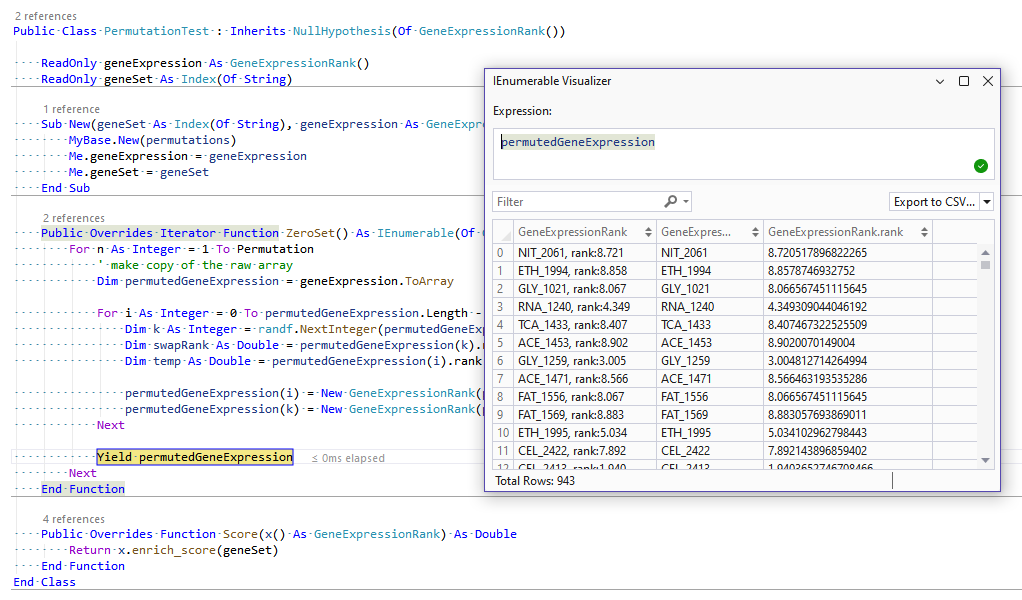 permutedGeneExpression(k) = New GeneExpressionRank With {
