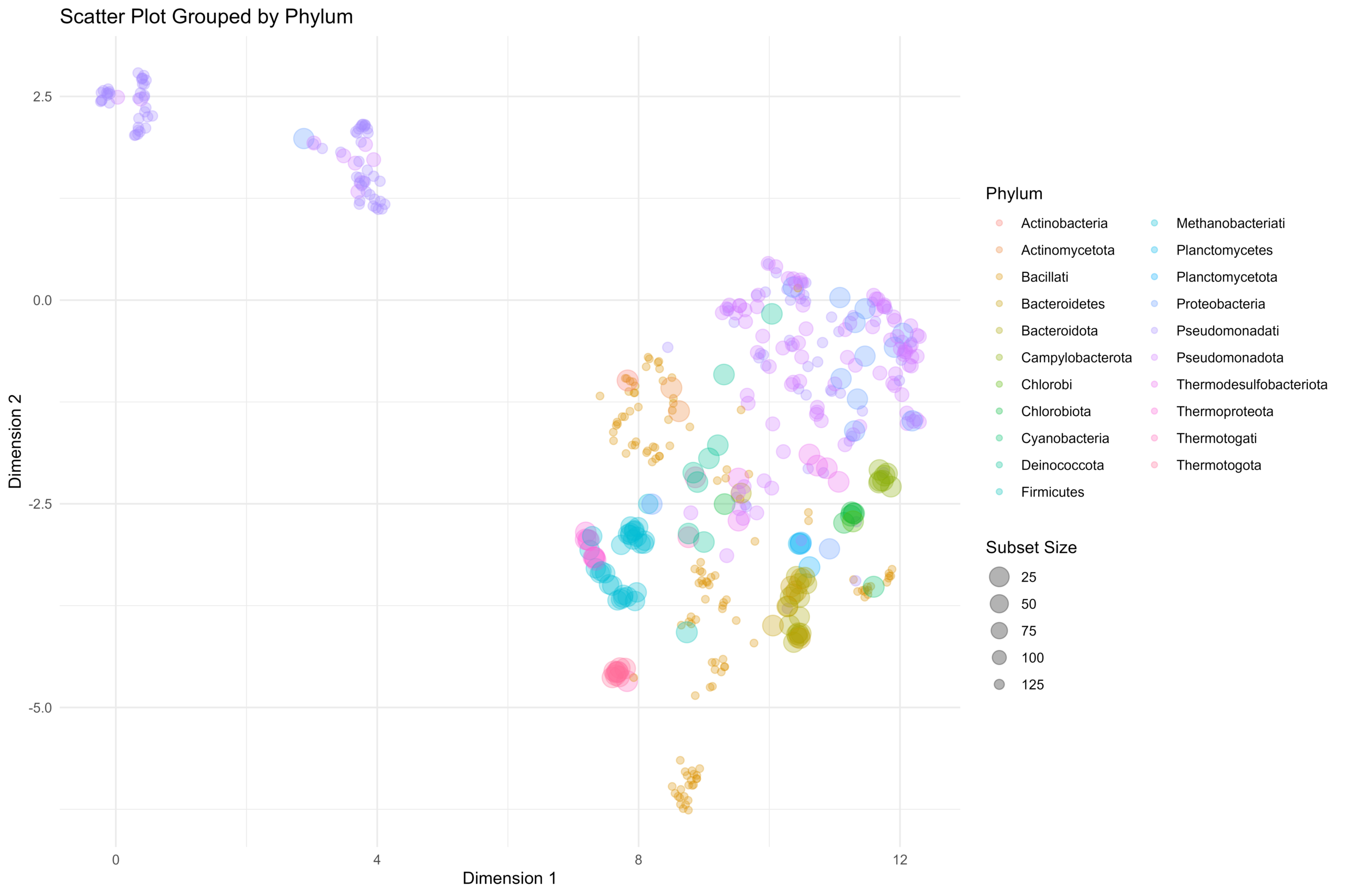 3. […] 在前面的一篇《基因组功能注释(EC Number)的向量化嵌入》博客文章中,针对所注释得到的微生物基因组代谢信息,进行基于TF-IDF的向量化嵌入之后。为了可视化向量化嵌入的效果,通过UMAP进行降维,然后基于降维的结果进行散点图可视化。通过散点图可视化可以发现向量化的嵌入结果可以比较好的将不同物种分类来源的微生物基因组区分开来。 […]